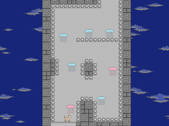 “you’re just a pathetic kitty, you will never summit my tower” said the man. and he was, in fact, right. i thought it was already kind of nasty of Ken to place poisonous jellyfish everywhere, and then they started shooting. a low blow